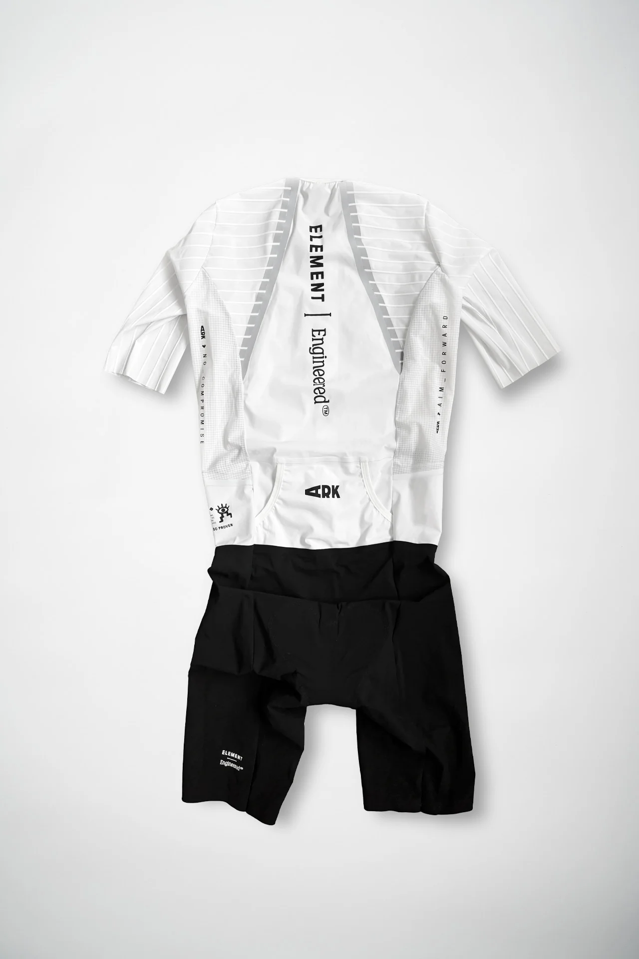 Strategiskt placerade räfflade paneler över axlarna och längs armarna förbättrar aerodynamiken ytterligare genom att optimera luftflödet i tävlingshastighet.